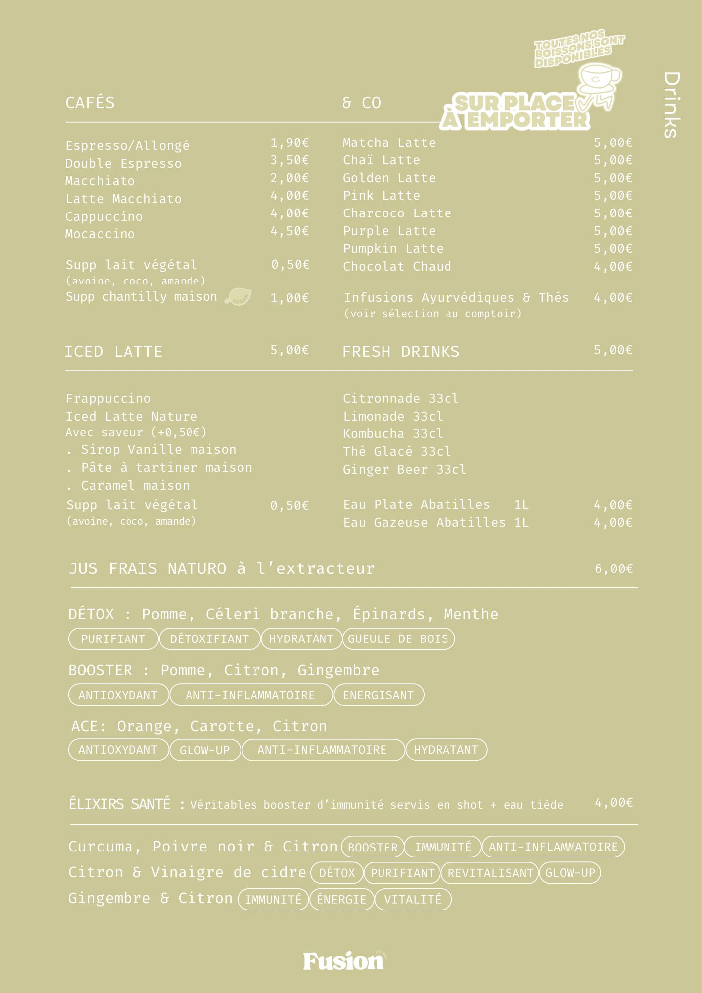 Que tu aies envie d’une pause détente, d’un moment convivial en famille ou d’un espace calme pour te concentrer, Fusion est l’endroit idéal pour savourer l’instant.